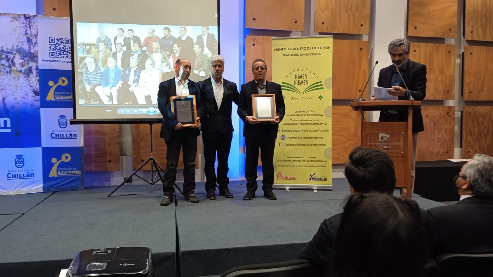 El viernes 18 de noviembre de 2022, en el Salón Claudio Arrau del Teatro Municipal de Chillán, se llevó a cabo el “Primer Encuentro de Extensión Chillan 2022” cuya actividad central consistió en una Clase Magistral para profesores y estudiantes de liceos municipal es de la comunas de Chillán, San Carlos y Ninhue, el que fue organizado en alianza entre la Fundación Kimen Tremen y el Departamento de Educación de la llustre Municipalidad de Chillán.